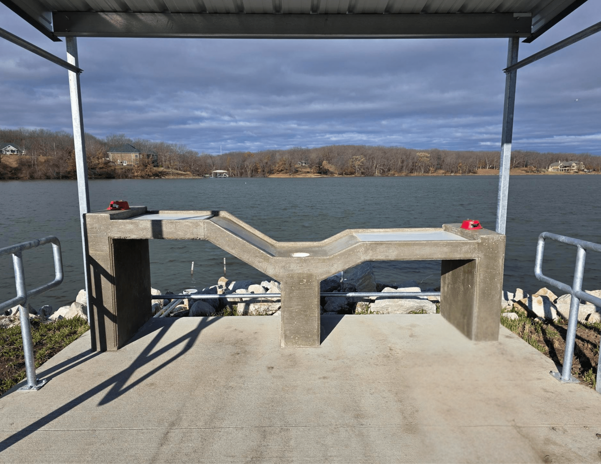 Through the assistance of Missouri Department of Conservation and the Community Assistance Program the Macon Lake boat ramp now offers new ADA restrooms, sidewalks and fishing dock plus a convenient lakeside fish cleaning station.